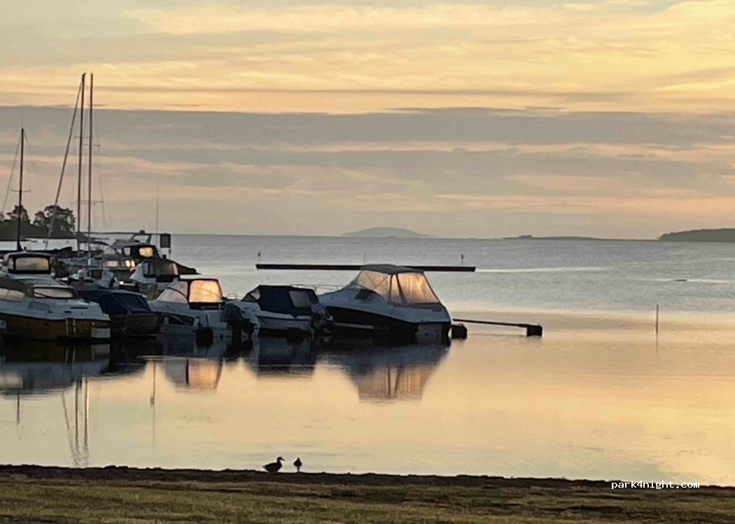 Ein sehr schöner Stellplatz. Wir hatten einen der fünf Plätze ohne Strom erobert, super Blick aufs Wasser. Acht Plätze mit Strom etwas nördlich. Ein schön gepflegter kleiner Jachthafen. Es ist alles da: V/E, Müll, WC, Duschen und, man glaubt es kaum, kostenlose Waschmaschine und Trockner. Abends kommt eine junge Frau zum Kassieren, 150€ ohne Strom. Herzlichen Dank für diesen schönen Platz.