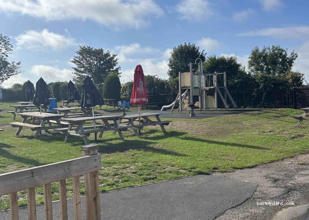 Camping agréable, bien entretenu, aire de jeux, piscine avec horaires, sanitaire propre et coin pour laver la vaisselle. Petit passage avec des animaux, sympathique pour les petits. La réception ferme à 17h30 donc je vous conseille d arriver avant ou encore de réserver, nous avons payé 20£ la nuit sur sol dur avec électricité pour 2 adultes, un enfant de 1 an et un chien.