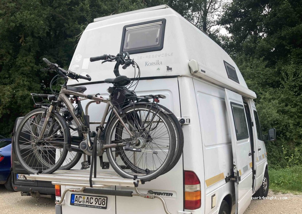 Petit parking de randonnée dans une rue très peu fréquentée. À peine visible de la rue. Nous avons passé la nuit avec deux bus. Point de départ de diverses randonnées, par exemple la grotte Bittelschießer ou les ruines du château avec la taverne du château de Bingen. Pas de sanitaires ni d'électricité.