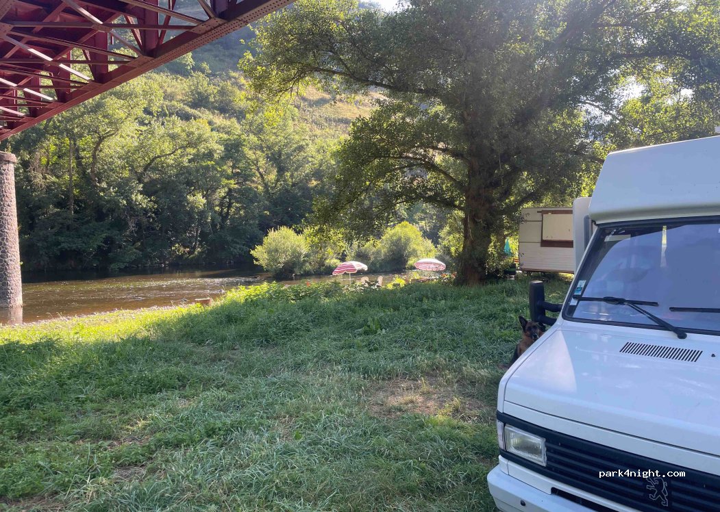 Arrivés à 20 heures, nous avons été accueillis avec petite guinguette qu'un jeune très sympathique du village à ouvert au début de la saison. Possibilité de boire un verre, de manger sur le pouce en face de la rivière qui offre un cadre idyllique. Spot très calme et agréable avec le bruit de la rivière. Pont au dessus très peu passant. Nous recommandons vivement ce spot rural, nous y reviendrons!