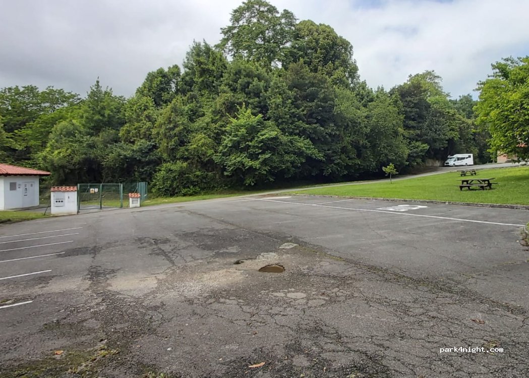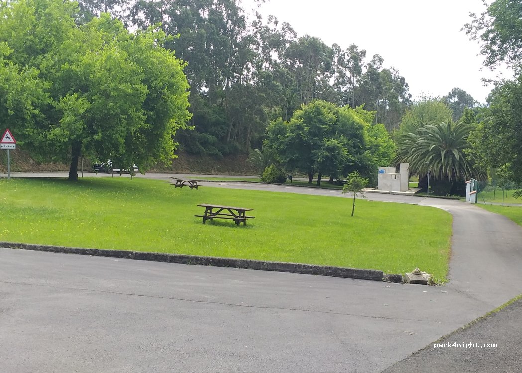Zona asfaltada junto a un jardín con mesas justo al lado de la carretera pero avanzada la noche no hay casi tráfico. Ideal para visitar las casas indianas del pueblo (andando sin problema) así como el museo del emigrante que está a dos minutos a pie (entrada 8 euros). Sin servicios. Pasamos una noche sin problemas.
