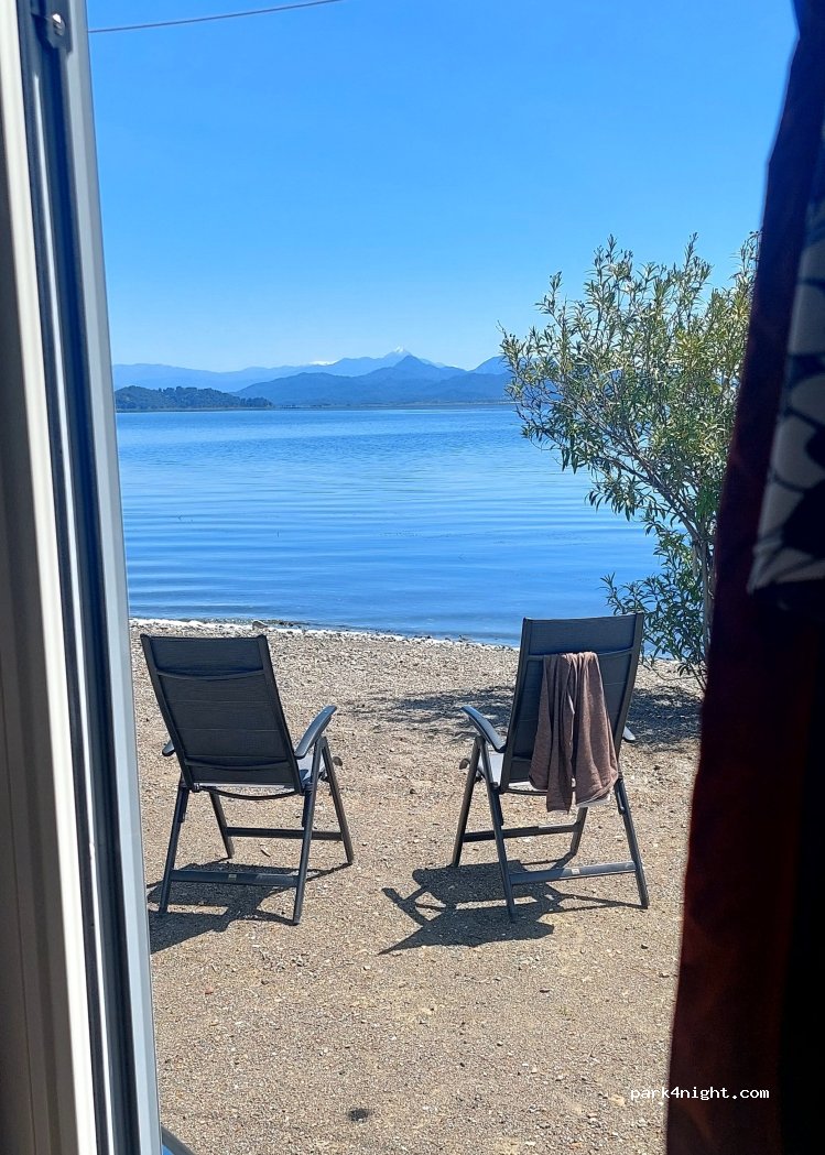 Lovely campsite on the edge of the beautiful lake which is fed by thermal springs. Excellent friendly operators and a well stocked bar and great food. The entrance is down a very narrow road but I managed it in my 7.5tonne 8 metre camper truck so as long as you take it slow you should be ok.