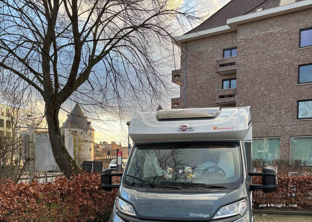 8 places de stationnement pour camping-cars dans un parking municipal, surface pavée. A quelques centaines de mètres des tours et du centre Broel. La vieille ville vaut le détour et est facilement accessible à pied.