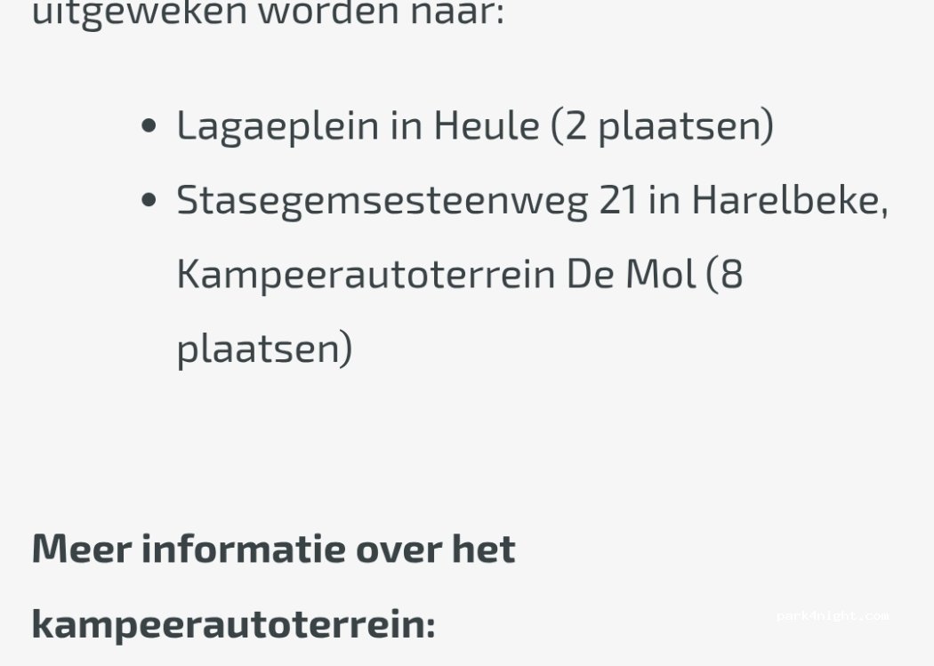 Parfait, très bien, situé, de grandes places, sur un sol dur, et à niveau, vidanges et eau à disposition. Électricité gratuite. exemple, parfait de ce qui devrait être. Merci à la mairie de Courtrai. ATtention : le parking sera fermé pour travaux du dimanche 13 avril 2025 à 20h jusqu’au moins le 5 mai…