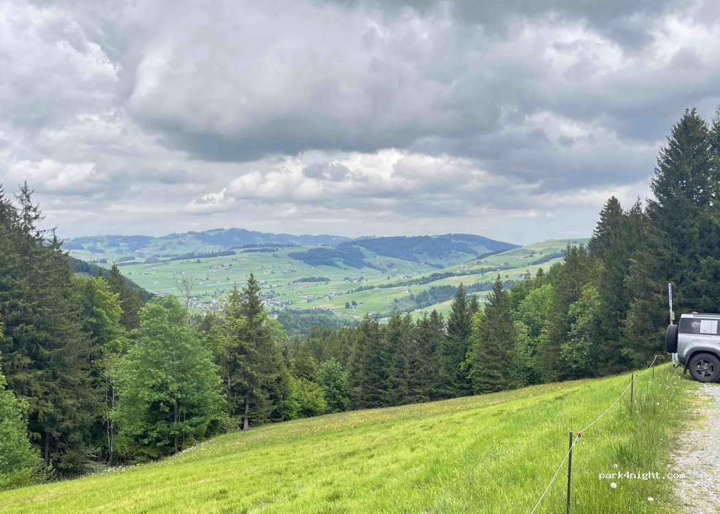Ongelooflijk mooie plek. 24 uur vijf SFrank. Staat geen beperking bij. Werd wel boos door een einheimische aangesproken dat het niet de bedoeling is om hier te overnachten. Ik zou dat moeten weten… overigens werd het nog erg druk met bezoekers die nog laag gaan wandelen. Parkeerplaats vol. Wandeling naar Ebenalp en via Waldkirche en grot terug. Fenomenaal.