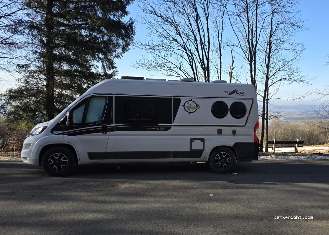 Sehr schöner Ort mit toller Aussicht. Viel Platz für Fahrzeuge jeglicher Größe. Nachts ruhig, Tagsüber kommen viele Wanderer. In der Nähe gibt es ein Restaurant