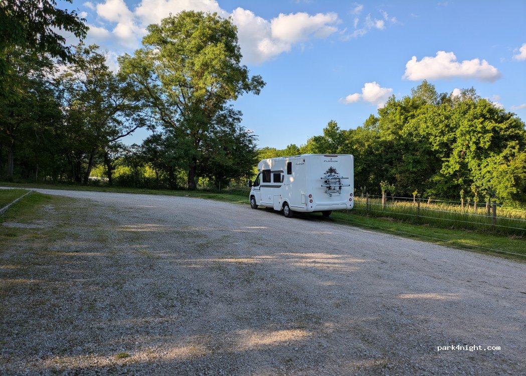 Área municipal gratuita, rehecho el suelo, carretera Solomiac, frente al estadio. No se vacía el casete. Ligeramente inclinado. Grifo de agua de muy bajo flujo y sin posibilidad de fijar una tubería, excepto el sistema de demerde. Posibilidad de tomar agua del grifo al aire libre del estadio.