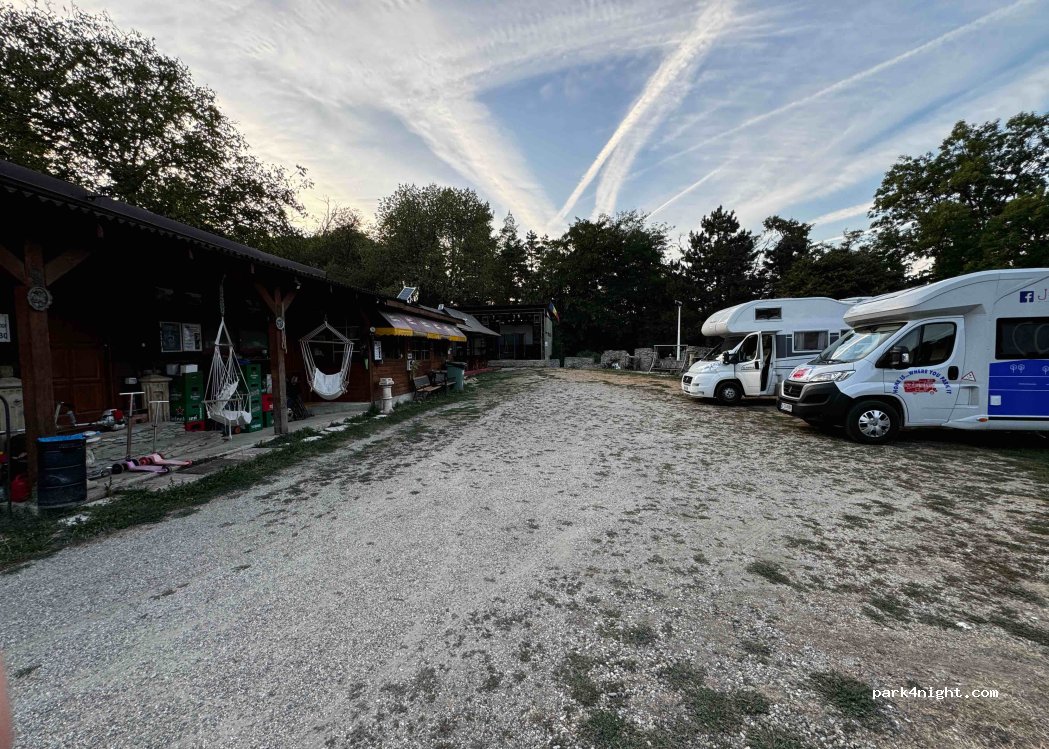 Worth a stop, below the deva castle which you can walk around, we visited corvina castle from here and returned as we really liked it, there is a upper platform on hard standing with bbq chairs ect for white whales and a lower section for vans 4x4 ect, you would not think it was in the middle of a town, hot showers are 2-6 as the site is off grid, town is walkable. Owner speaks good English, if he is not around there is a number on the door or he will turn up at some point. Recommend