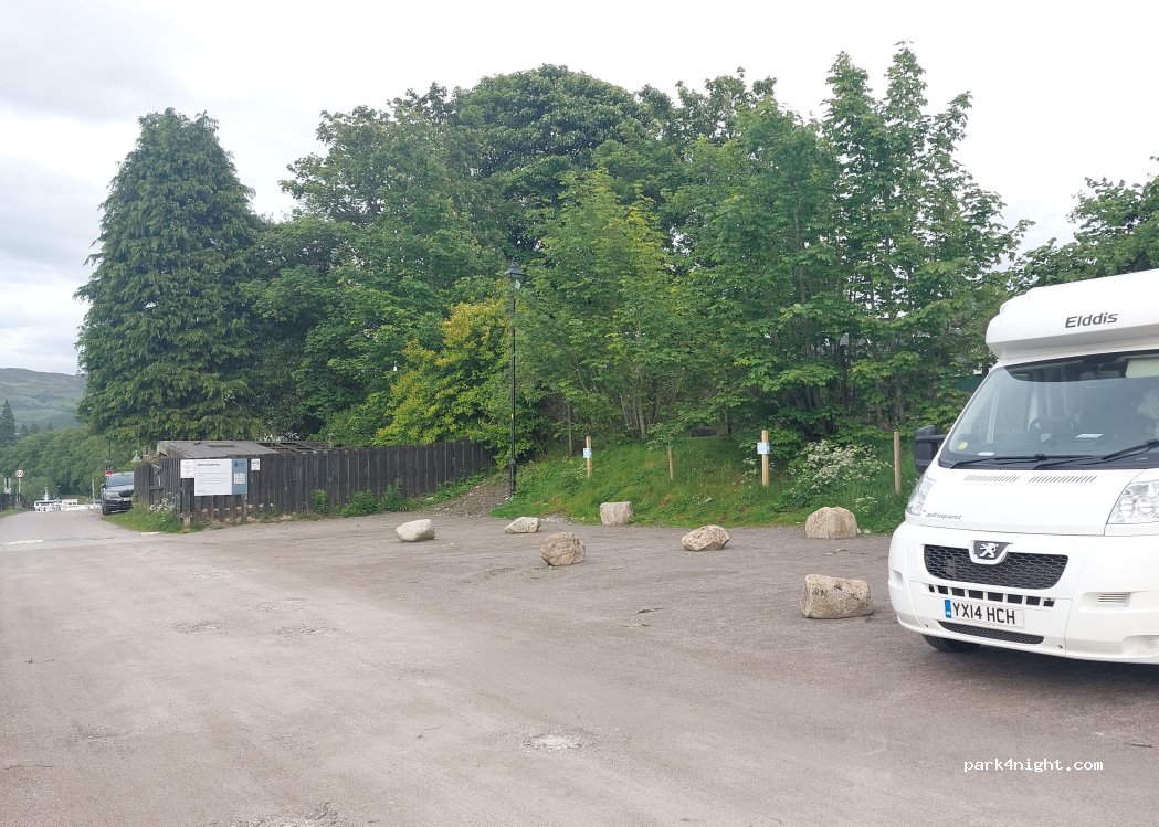 Paid for a pitch but there was already 4 there so had to move on to Loch Ness caravan park just along the A82. We parked up there no problem and it has all services for the van. However we took the dogs for a walk and passed the canal top Loch and to my horror there were 8 parked there and I'm furious. They also can't read the sign that says no parking past the sign.