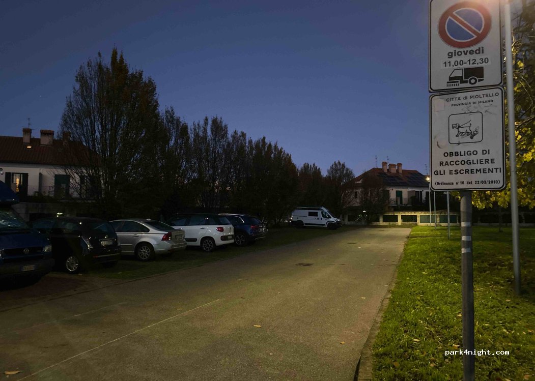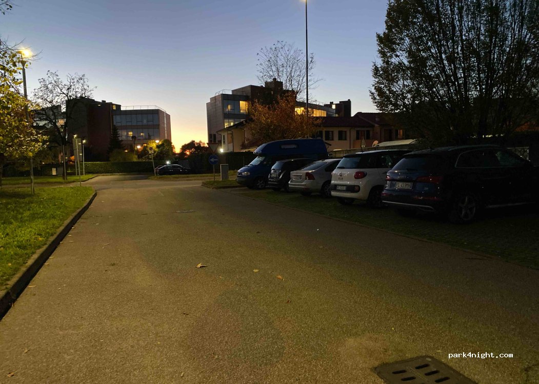 Public parking both on the right and on the left of the road. Adjacent to villas. Free. Some locals park their campers. About 900 meters from the Cernusco sul Naviglio underground for those who want to visit Milan. No services.