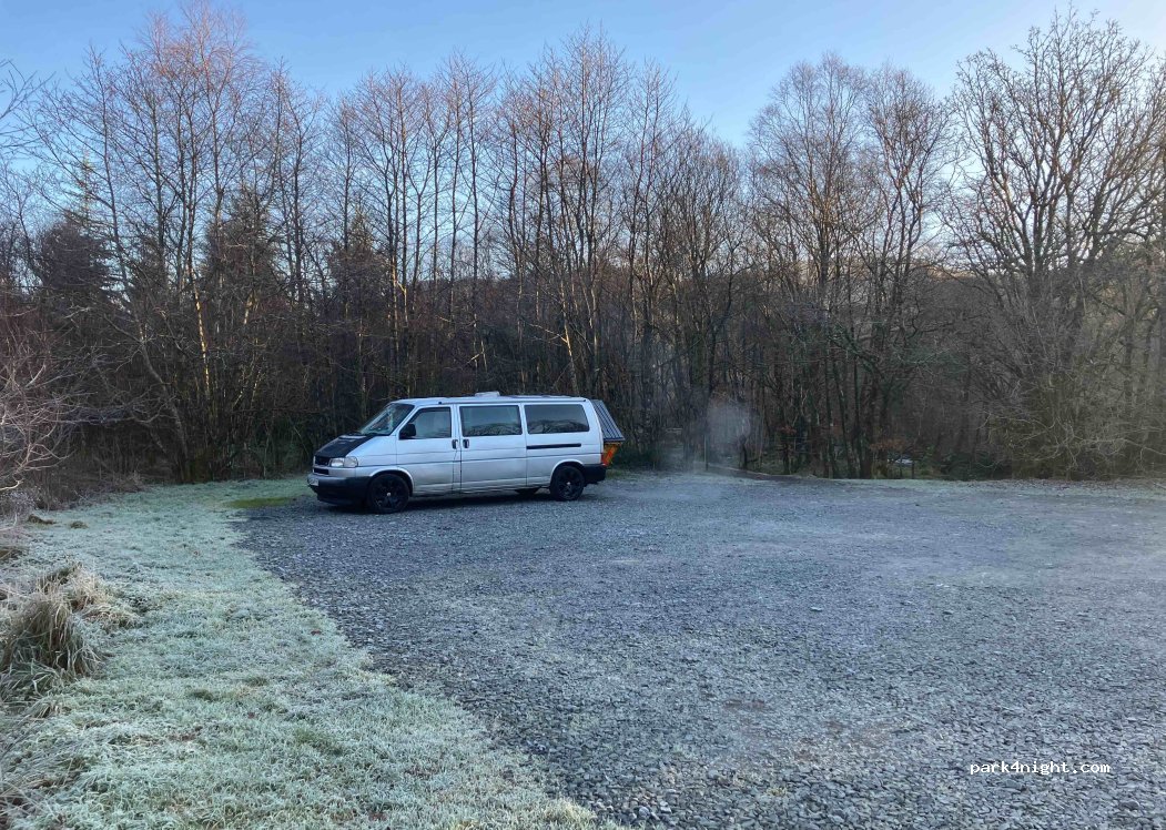 Large level gravel carpark of the road 5 minutes from the merrick carpark but with full 4g on o2 didn’t here another vehicle all night I was the only van here