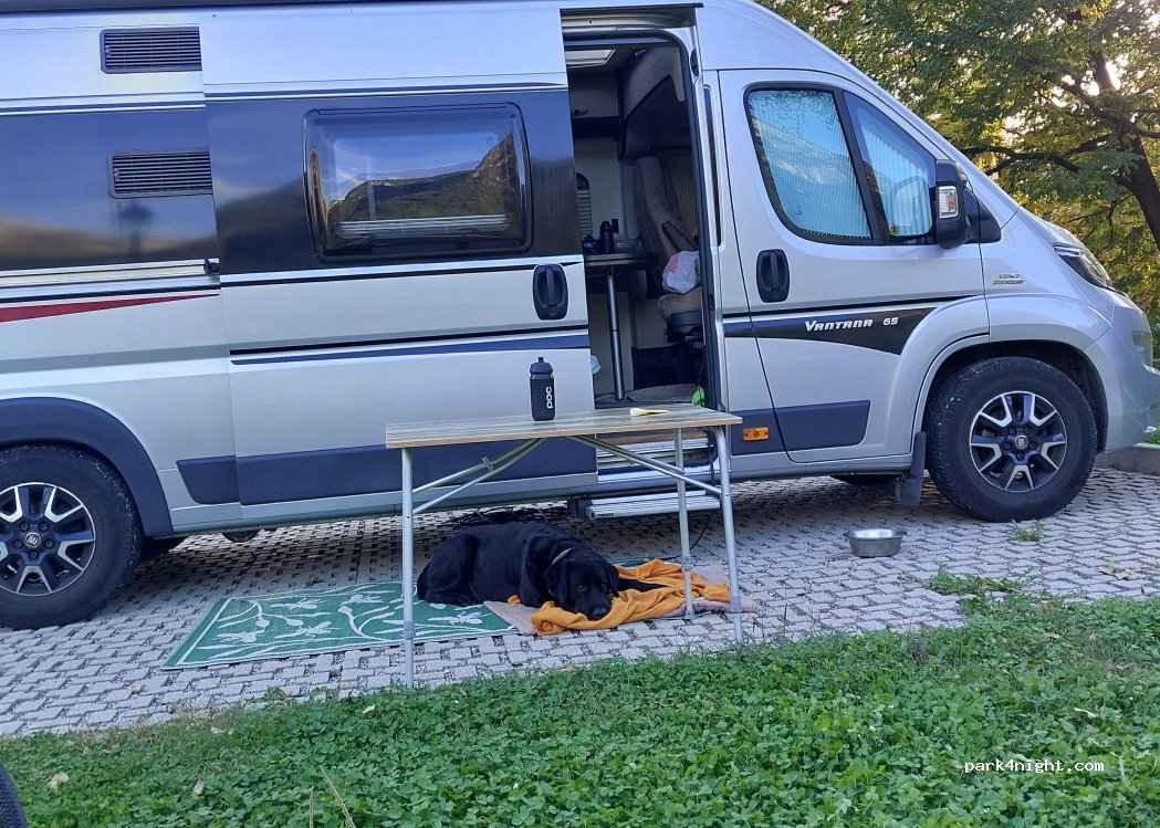 Very nice camp. Toilets and shovers clean. Hot watter. Friendly saff. Perfect pizza and Aperol :) . Brakfast awaliable. Dogs velcome. Electricity. 45 €/Camper, 2 adult, 2 childs/1 night