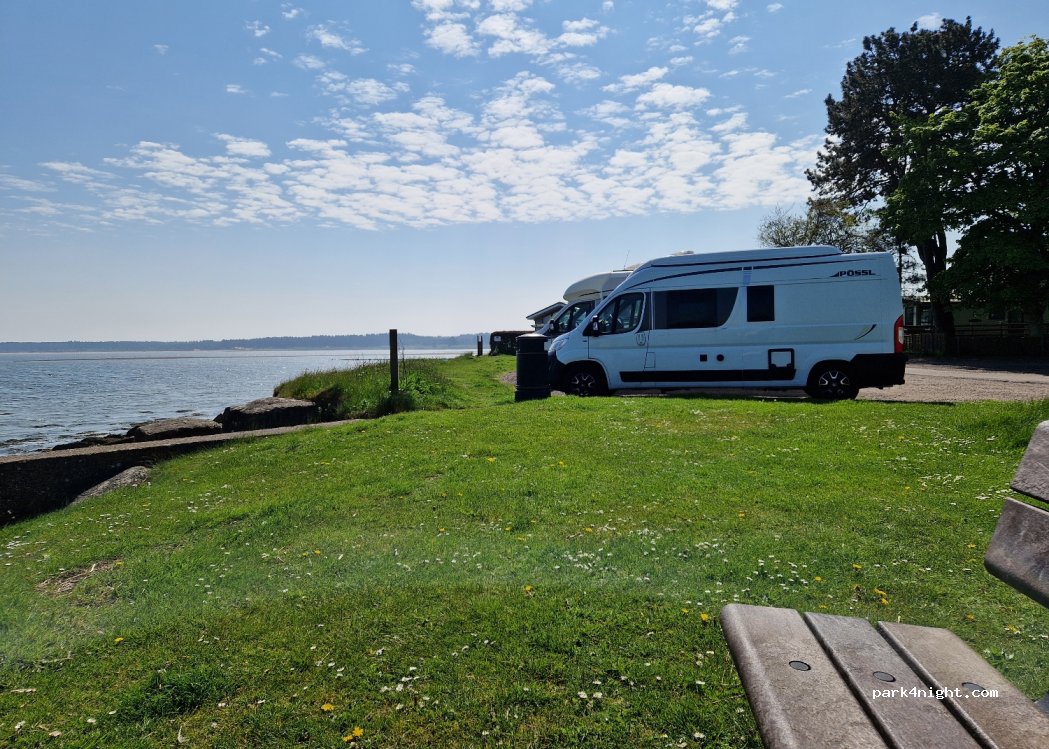Perfect stop, 10 mins walk into the small town for bars/take out etc. parked facing the water, lots of bins, good 4G on EE and a peaceful night. 5 of us here.