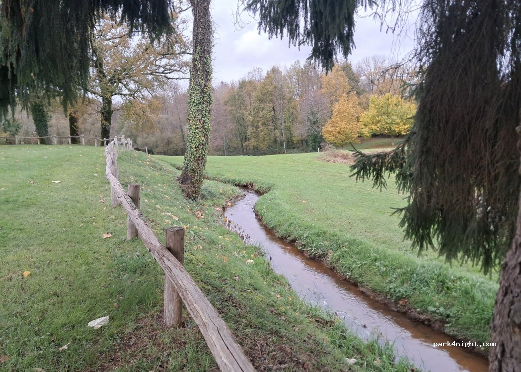 Très belle aire au bord d’une petite rivière. Services eau 2 €/10 mn
