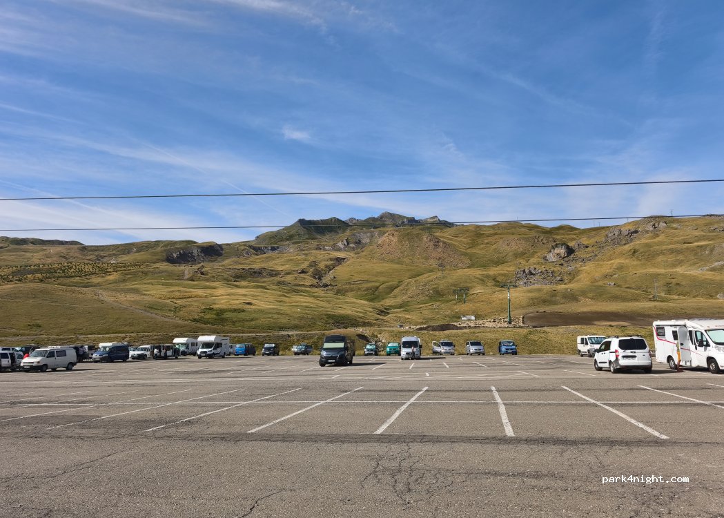 Pàrquing molt gran de les pistes, on poder passar una nit fora de temporada d'esquí. No entenc perquè hi ha cartells a tots els pàrquings d'aquesta estació on no es permet pernoctar......