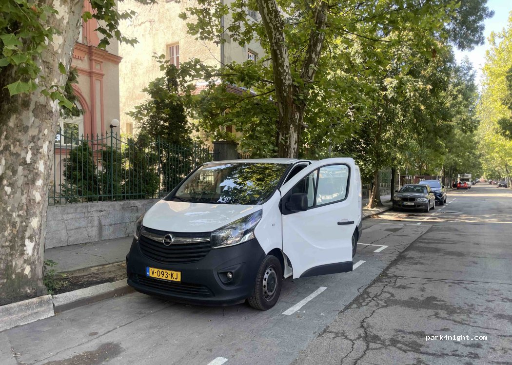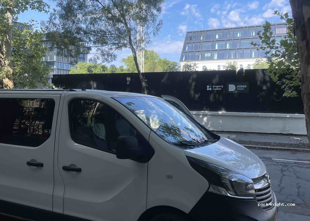 Petite rue avec beaucoup d'espace de stationnement des deux côtés. Parking gratuit la nuit, à partir de 8h environ 1 EUR / h.