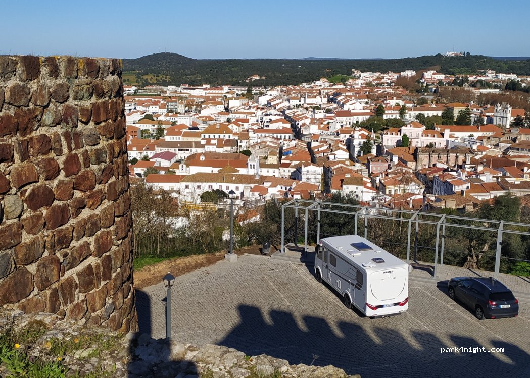 C'est parfait. Calme : nous sommes seuls. Propre. Posés à plat sur de jolis pavés. Bien sûr nous sommes mi-octobre et en semaine. Les ruines de ce château sont magnifiques et gratuites. La ville accessible par des ruelles en escalier ou pas. Les clochers se répondent. Les habitants habitent simplement. Ça réconcilie avec l'itinérance après avoir détesté Sintra et les hordes de touristes dont nous étions.