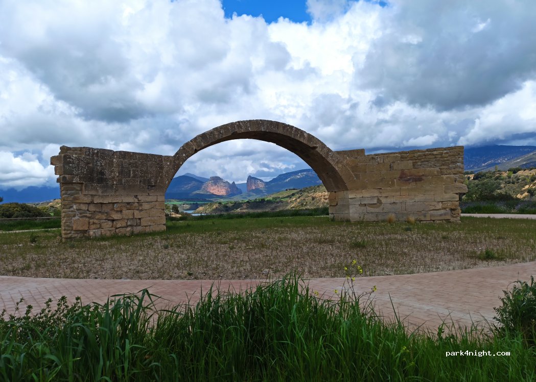 Near an embalse (dam). No height limit, easy to access. There are tables and trash.