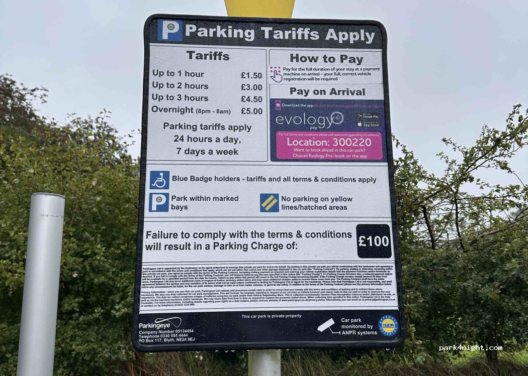 Le parking n’est plus gratuit. Très propre en gravillons. La tarif pour la nuit est de 5£. Tout à fait raisonnable. Cameras de surveillance donc n’oubliez pas de payer en premier. Attention le parking est inondable. Et je ne sais pas s’il est fermé en cas de hautes eaux.