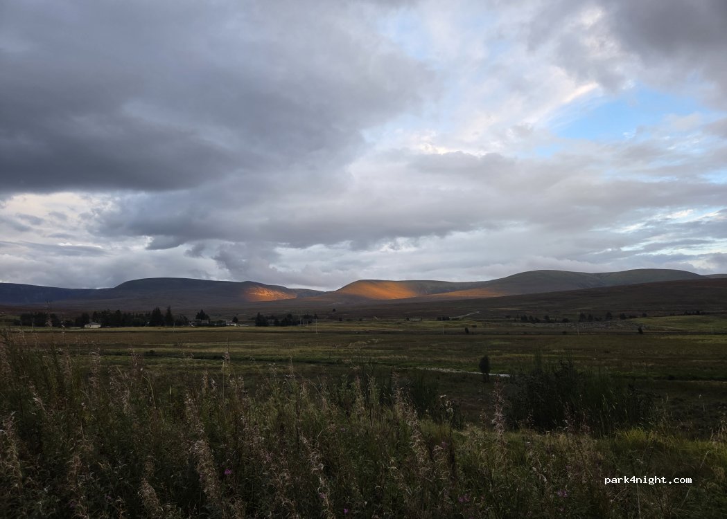 Prima plek. Mooi uitzicht, stil, erg donker en vlakke ondergrond (grind). Zou zeker terugkomen, vooral na whiskey-proeverij bij Dalwhinnies (2 km wandelen).