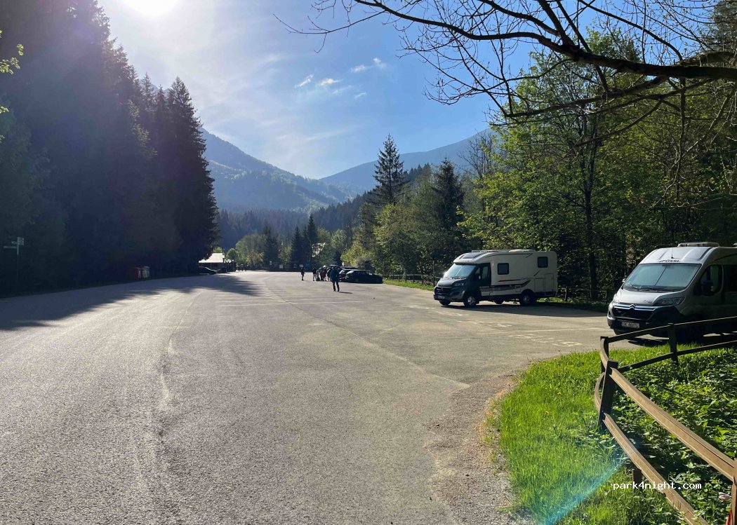 Stefanova car park, the starting point for most of the region's hikes, but also a charming little village with restaurants. Plenty of parking available, but with a slight incline! Only short-term parking is permitted; overnight stays are prohibited.