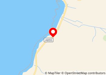Bel espace de stationnement presque au niveau de la mer et donnant sur le coucher de soleil. L'endroit est un peu en retrait de la rue (single track). La ruine du château de Duntulm est à portée de vue et à distance (environ 750 m).