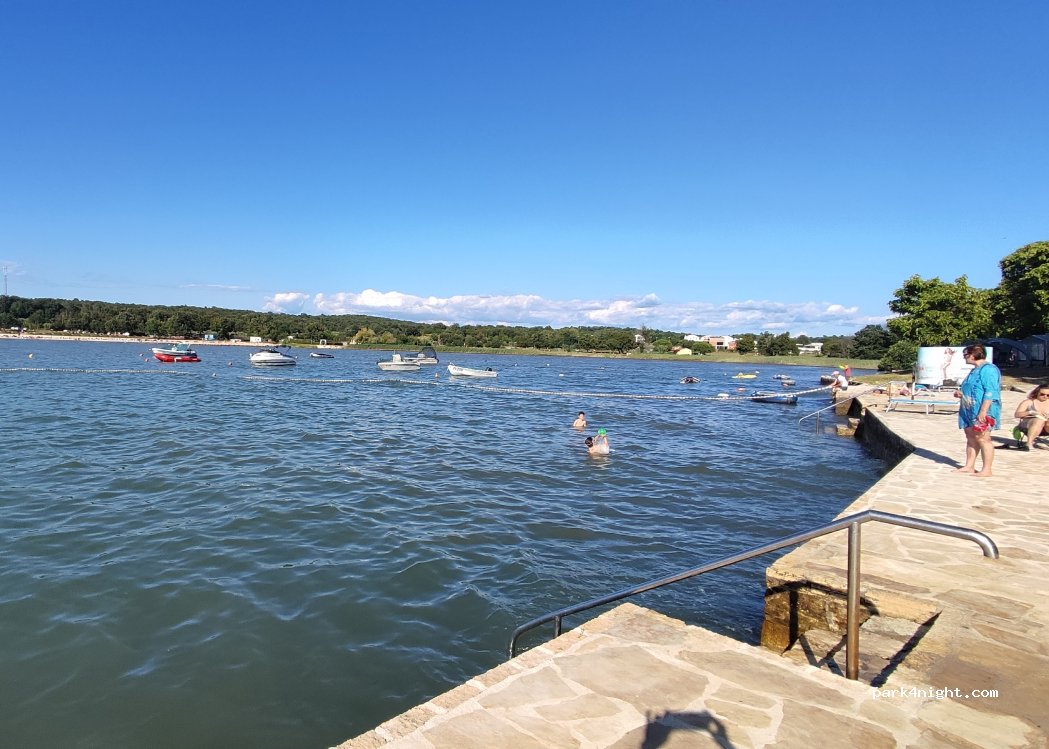 Wij hadden een mooie en ruime camperplek vlakbij het water, sanitaire voorzieningen erg mooi en schoon. Aan onze kant helaas geen strand. Wel mooi aangelegde kade met trappen vanwaar je het water in kon. Standschoenen zijn wel aan te raden. Met fiets kun je via de kust fiets/wandel pad uiteindelijk in Poreč uitkomen. Grote supermarkt op nog geen 100 meter recht tegenover de camping.