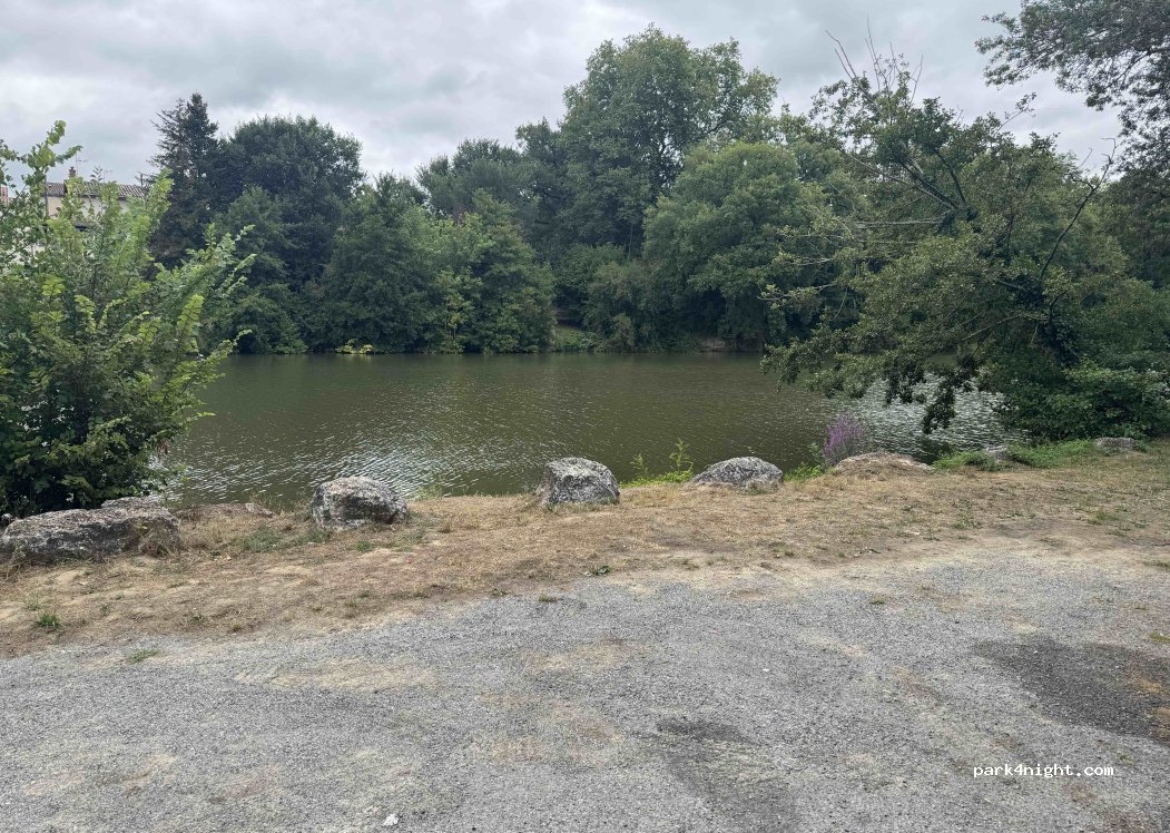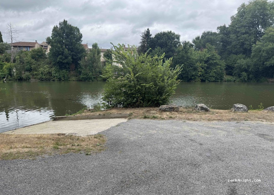Petit quai en bord de rivière, idéal pour une halte repas en journée, ombre et fraîcheur bienvenues par temps chaud. Accès pompiers, on y est resté 2 heures, rien à signaler. Attention à la boue.