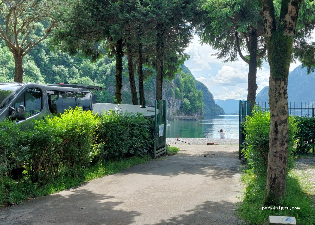 Besitzer sind super nett & unkompliziert, wir haben uns einen großen Stellplatz mit anderem Van geteilt. Die Sanitäranlagen sind immer sauber gewesen und vollkommen ausreichend. Man kann lecker essen und einen guten Cappuccino trinken (1,80€) mit toller Aussicht auf den See. Eine Fähre legt dort ab, man kann zum Klettersteig starten, surfen, einen Spaziergang durch das Naturschutzgebiet machen.