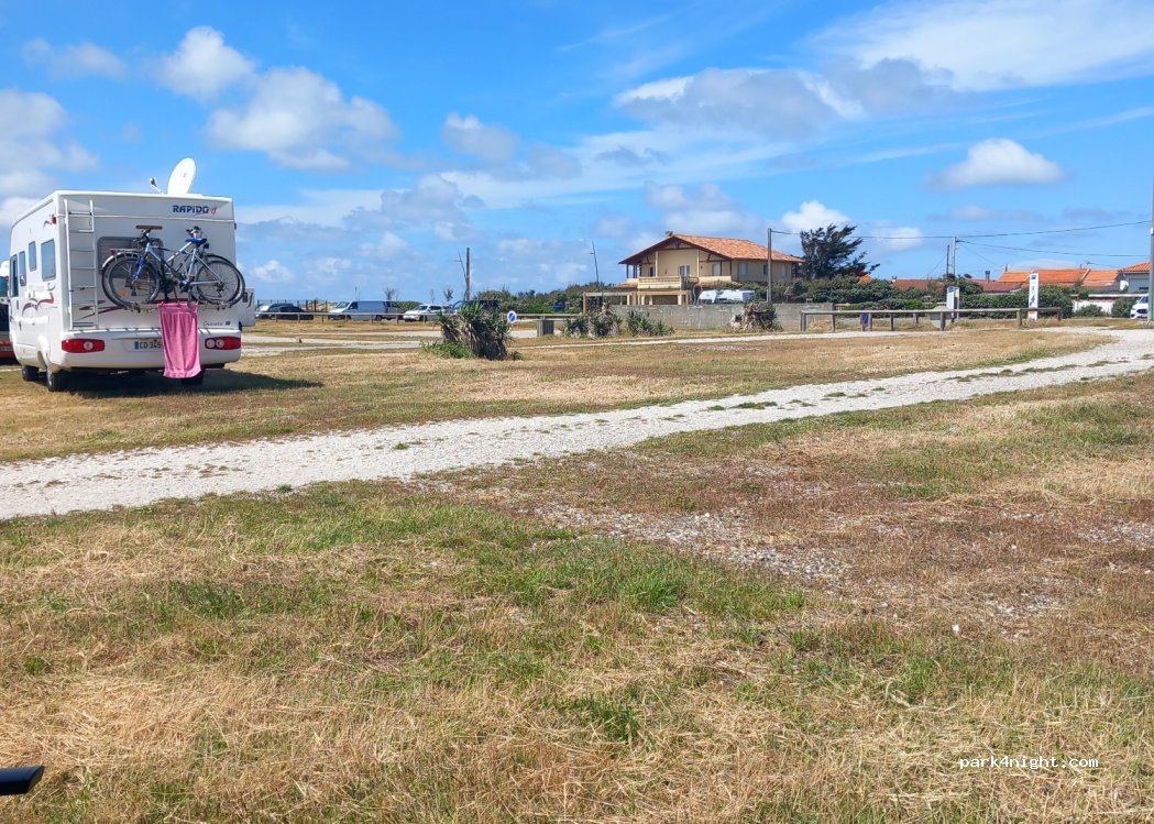 Emplacement idéal proche plage et village. Vérifiez les places disponibles sur le site Camping Car Park avant de venir. Nuit calme bercé par le bruit des vagues. Pas d'ombre. Pas d'électricité.