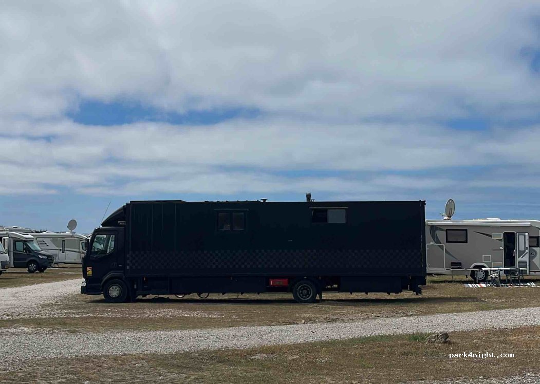 Il y a une autre aire Cc Park à 5mn d'ici avec électricité ombre pour le même tarif. En contre partie vous serez contre le camping, ou la route. Ici pas d'ombre pas d'électricité, mais l'océan directement en empruntant le petit sentier qui se situe au fond à droite de l'aire , et malgré le très grand nombre que nous étions (Full), nos 2 nuits ont été très calme, donc le choix vous appartient.
