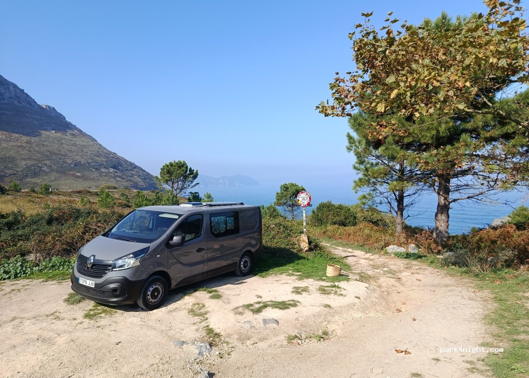 Aparcados a la orilla del camino. Pasamos dos noches con varias van y ac. Techo arriba todo el día. Por la noche hay unos perros que ladran muchísimo hasta media noche luego sitio tranquilo. La playa es muy bonita y posibilidad de subir a los ojos del diablo.