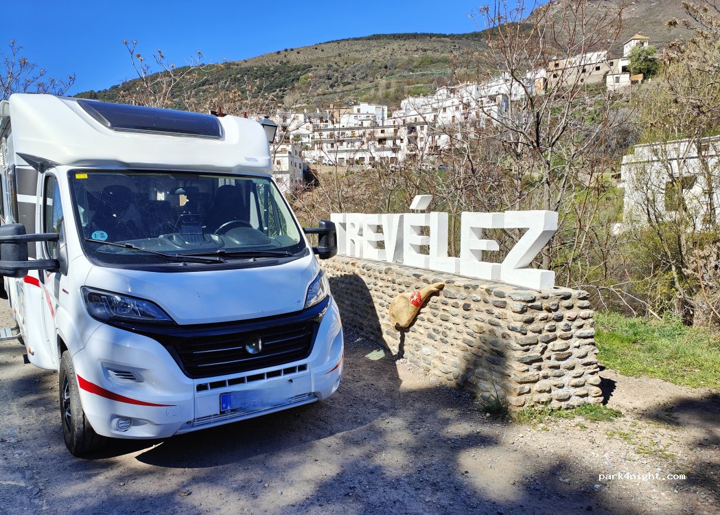 Karretera ondoan dago baina ia ez da kotxerik pasatzen gauez. Ibaiaren kontra dago eta goizean gosaltzeko edo bazkaltzeko ere primeran dago. Ez dago zerbitzurik, zakarrontzia bakarrik. Trevélez ikusteko edo inguruko mendietara joateko aparkaleku aproposa.