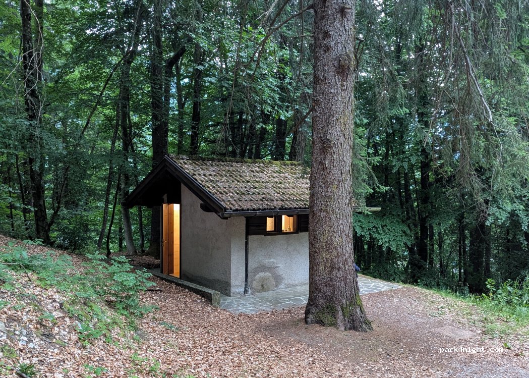 Ampio piazzaledi ghiaia, in piano. Adiacente ad una chiesa. Vari tavoli da picnic,una fontana funzionante anche a dicembre(8/12/25) e servizi igienici che però erano chiusi. Molto tranquillo e silenzioso. Ci siamo stati 2 volte passando notti molto tranquille. Peccato non si goda di alcun panorama a causa degli alberi. Poco sole il che può essere bene o male a seconda della stagione. Consigliato