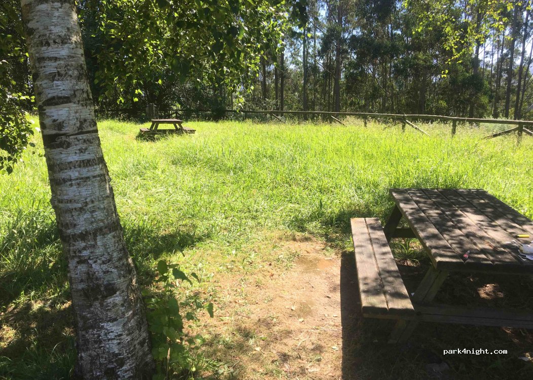 Lugar grande con mesas de picnic. NO se puede pernoctar con el vehículo estacionado encima del césped. Por la mañana vino la policía y nos avisó.