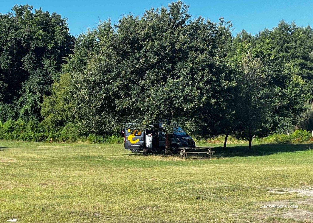 Prato con tavolino da pic nic molto tranquillo. Arrivato qui c’erano altri due Van ma c’è tutto lo spazio per posizionarsi senza disturbarsi.