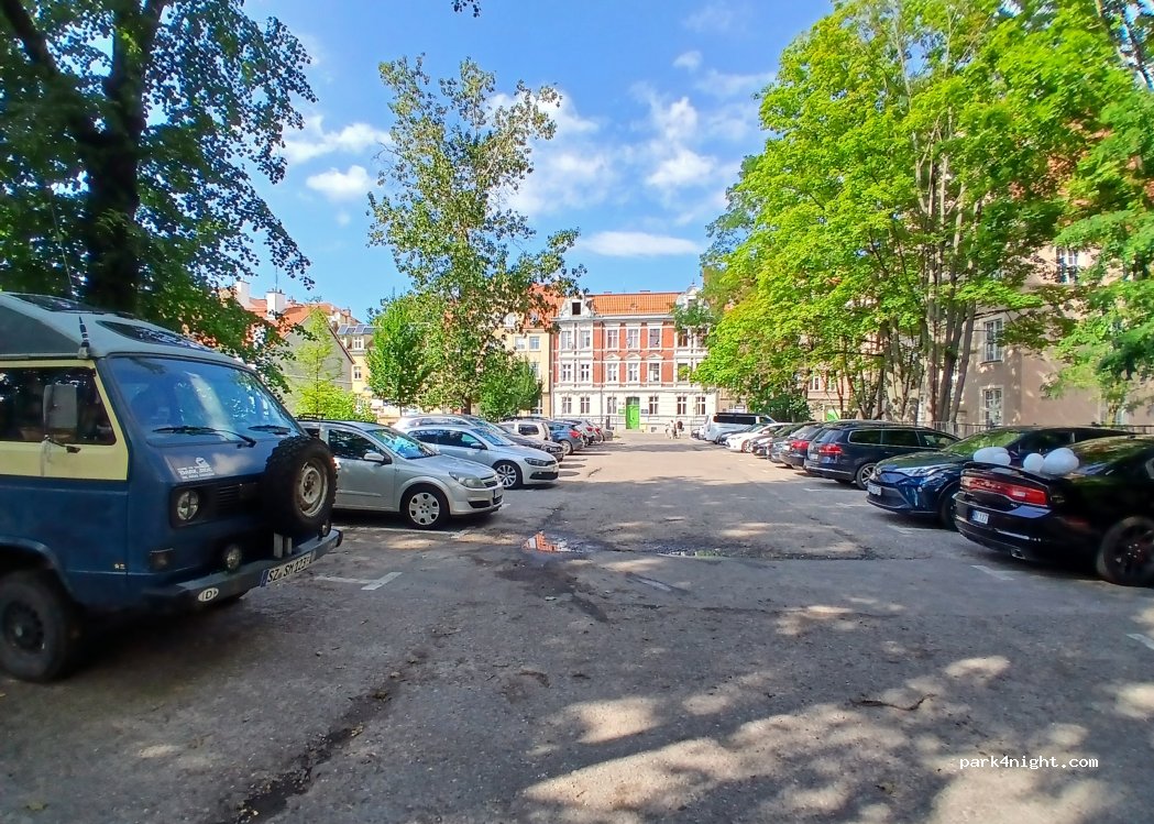 Plaza de aparcamiento, cerca del casco antiguo, de pago durante el día, gratuito los fines de semana.