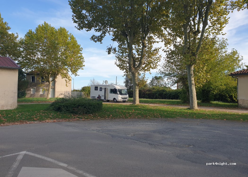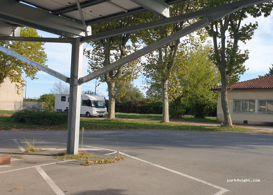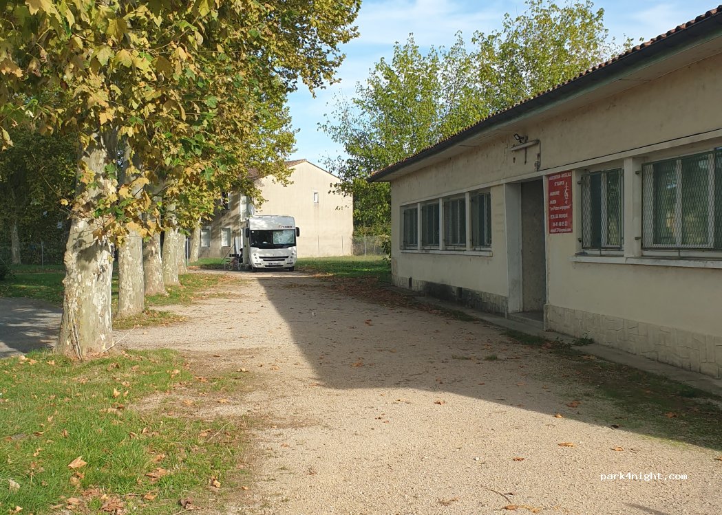 Grand espace de stationnement tout au bout du stade de rugby. Endroit très calme pour la nuit mais aucun services.