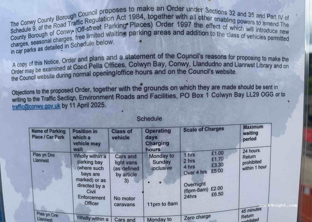 Fantastic free park up in a very large carpark. If you go to the far end, near the river, it's very peaceful. Given the difficulty with overnight parking, Wales needs more like this.
