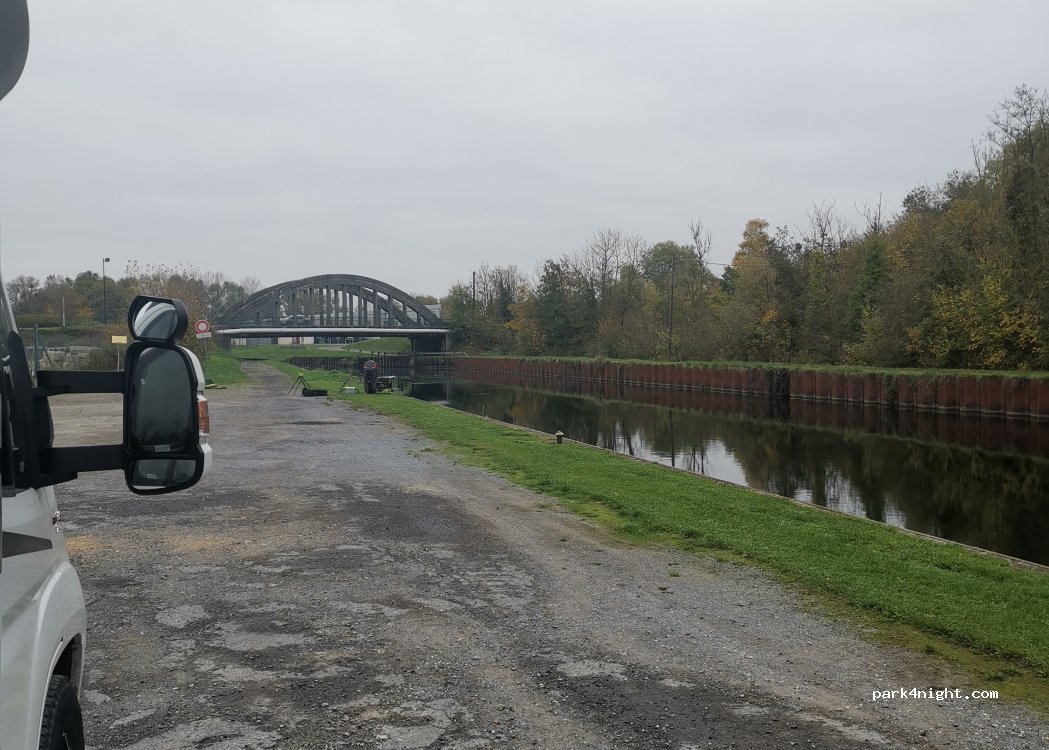 L'endroit mériterait un nettoyage mais bien placé, au calme. Proche boulangerie, Mc Do et Lidl. Accessible aux véhicules longs. Belle balade à pied ou à vélo le long du canal.