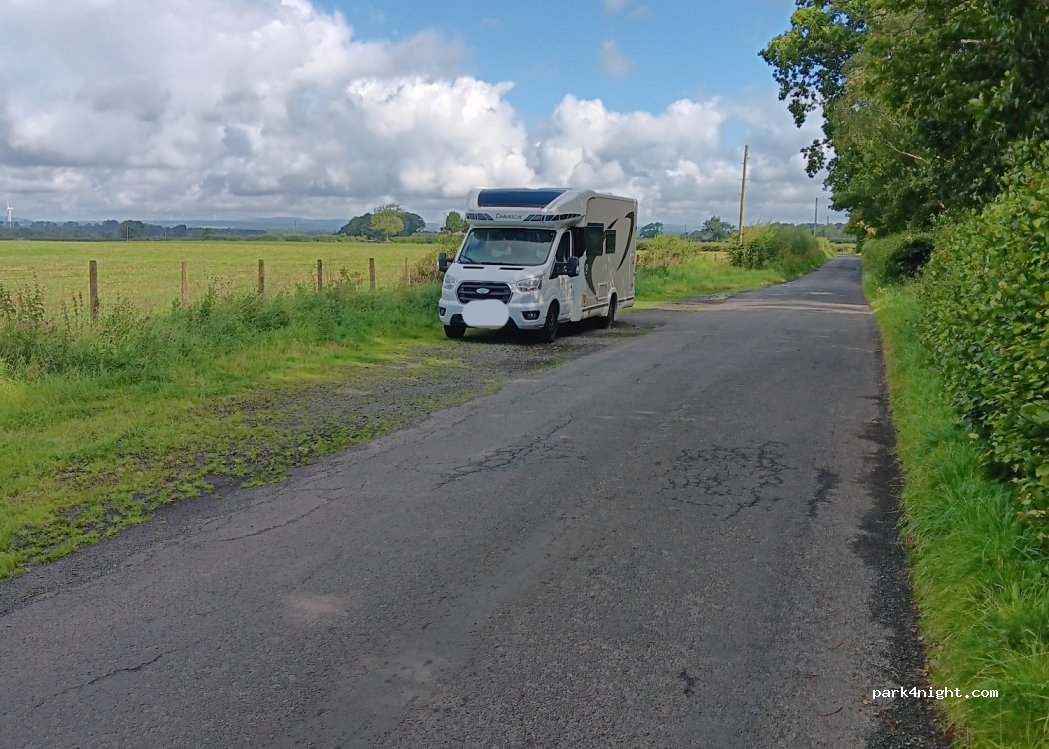 Rural layby on a quiet road. Very little traffic using this section of the lane so a good spot for a sleep. No facilities. Nearby Longtown on A7 has public toilets, pubs, cafe, small supermarket and filling station.