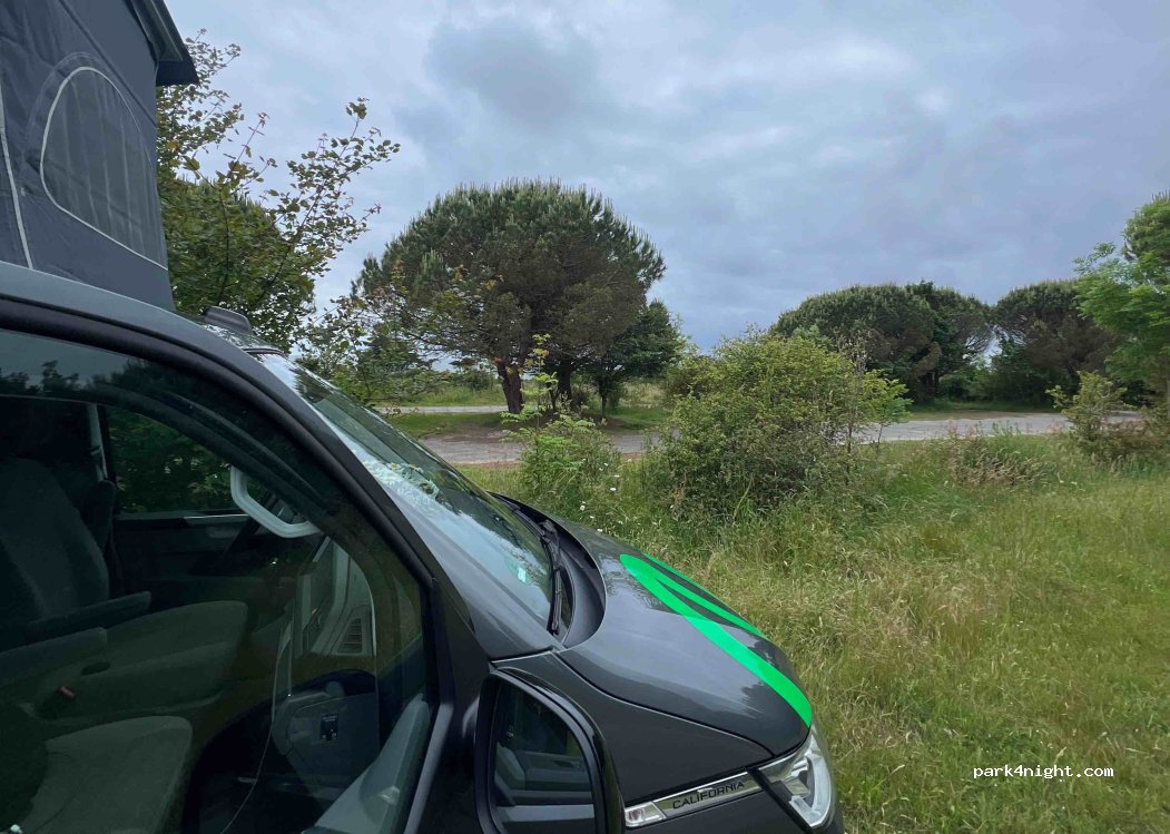 Calme ombragé sans toilette ni poubelle, à 5 mn à pied de la plage. Beaucoup d'emplacements hors saison. Hauteur limitée 2m10. Nous y avons passé une nuit très tranquille.