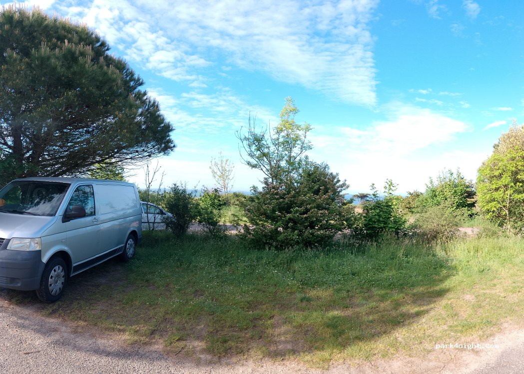 Parking très calme avec de la végétation et vue sur la mer! Attention il est possible qu'il ne soit plus autorisé d'y dormir depuis 04/2025, mais à vérifier !