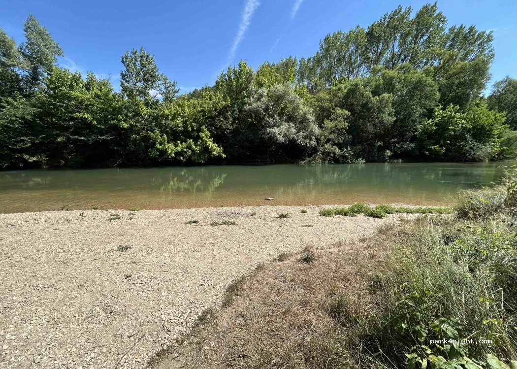 Nous souhaitions nous poser pour la nuit mais route fréquentée trop proche du lieu. De plus, des plots ont été installé afin d'éviter le stationnement près de la rivière. Nous avons fait demi-tour. Mais plage superbe : bien pour la journée pour la baignade !