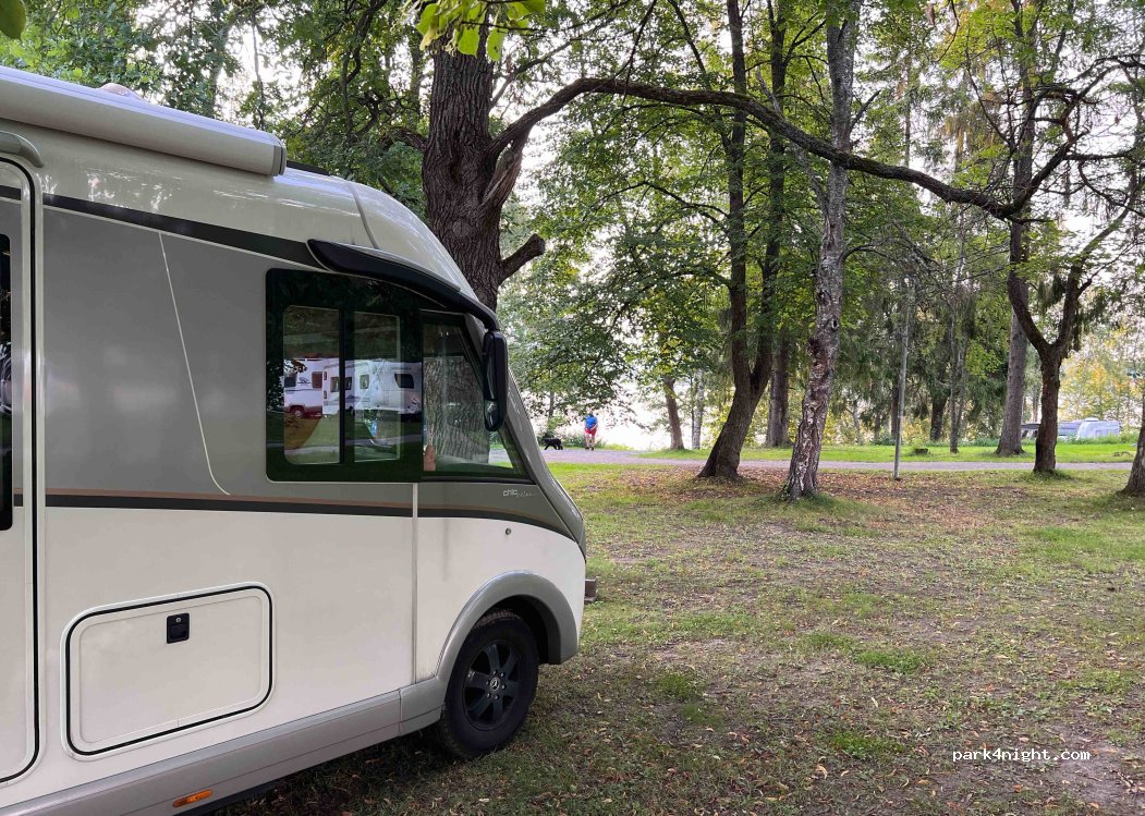Spacious campground with annoying squirrels and regularly cleaned facilities. Without electricity many options to park. Big dish washing facilities with attached dinning room/ picnic area. Washing machine broken. Regular bus service to city center (bus 8), helpful staff. And the lakeside there is a nice dock/plank to watch the sunset. if you need electricity, better have a reservation.