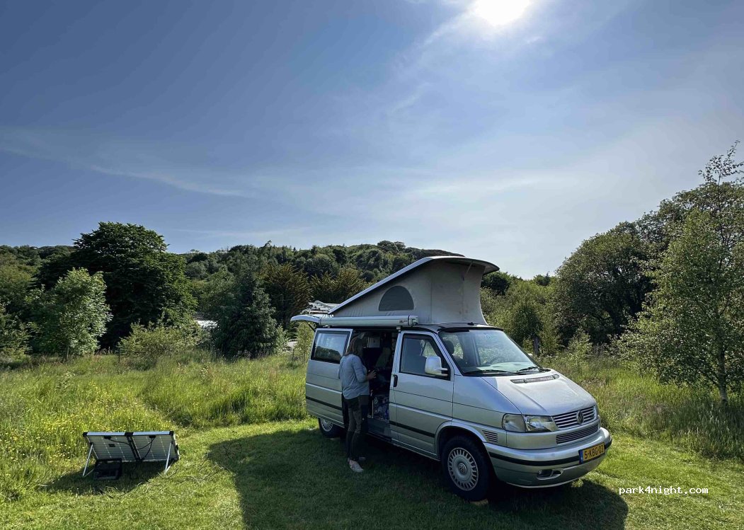 One of my favourite places to stay, lovely big pitches with more than enough room for LWB van. Fire pits available, perfect for wild swimming and kayaking. Dogs welcome (well behaved) the owner Ted is amazing & so helpful! Lovely clean toilets, showers and washing up facility’s