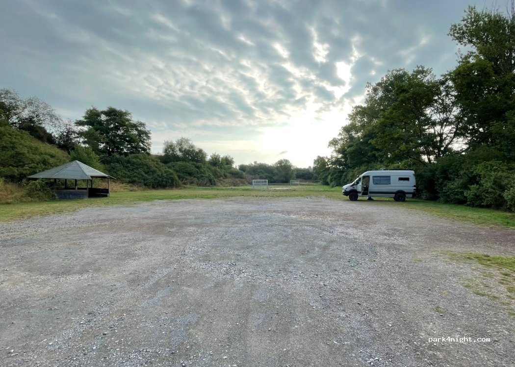 Ici, il y a un parking isolé dans une carrière. Sur le parking se trouvent un terrain de football et un abri. La place Hundisburg vous invite à vous attarder avec de nombreux objets historiques. Pas de restrictions. Pas de service. S'il vous plaît prenez votre poubelle avec vous !!
