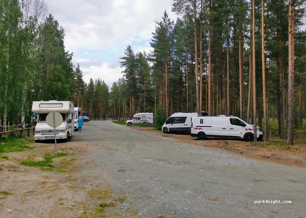 Ruhiger Stellplatz für die Nacht, wenn man den Weg nach hinten folgt. Hier könnten sich 3-4 Wohnmobile hinstellen. Vorne am Parkplatz ist viel Trubel. Ein kommen und gehen. Zwei Toiletten stehen auch zur Verfügung sowie ein Imbissstand. Imposante Elch-Skulptur. Das Stehen in der Bus/LKW Spur sollte definitiv gemieden werden.