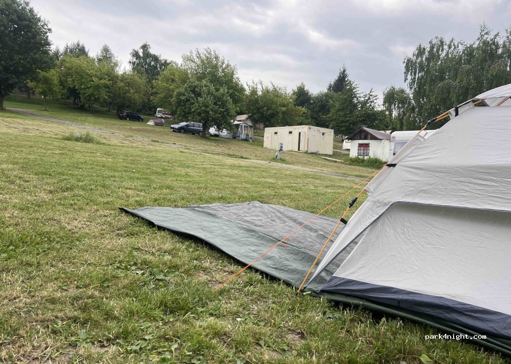 Fixed trailers accupy mostly all places. 16 euros for 1 RV and 2 people / night with electricity. Good and cheap buffet. Only few showers and toalett. Nice view and lake, quiet place.