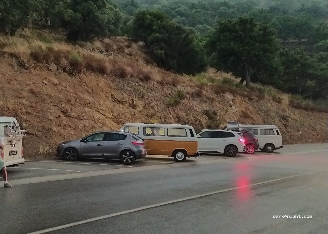 Convenient parking to visit the town. we didn't spend the night, too much on the road for us. there are better sleeping spots in Corbara or Aregno.